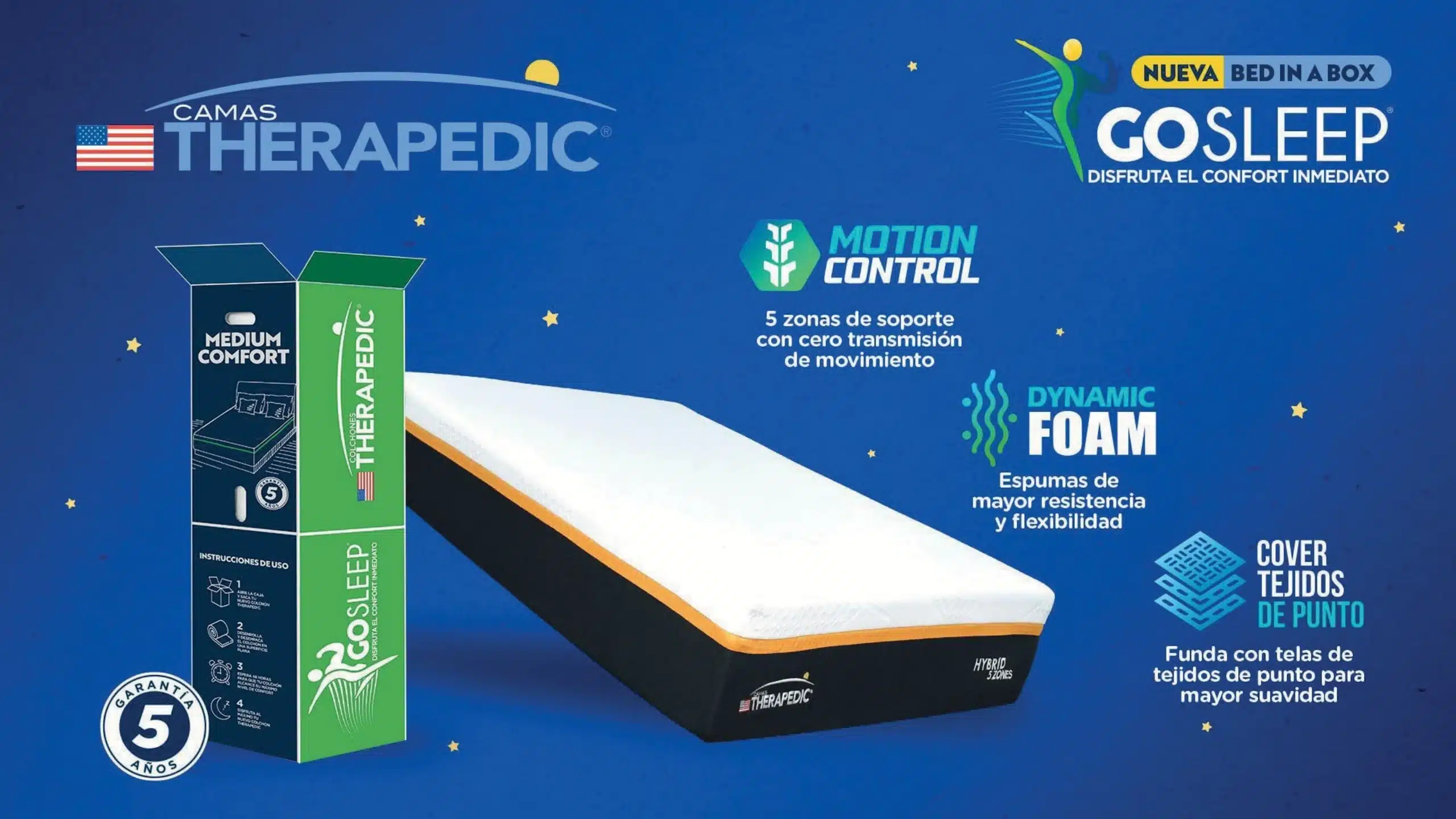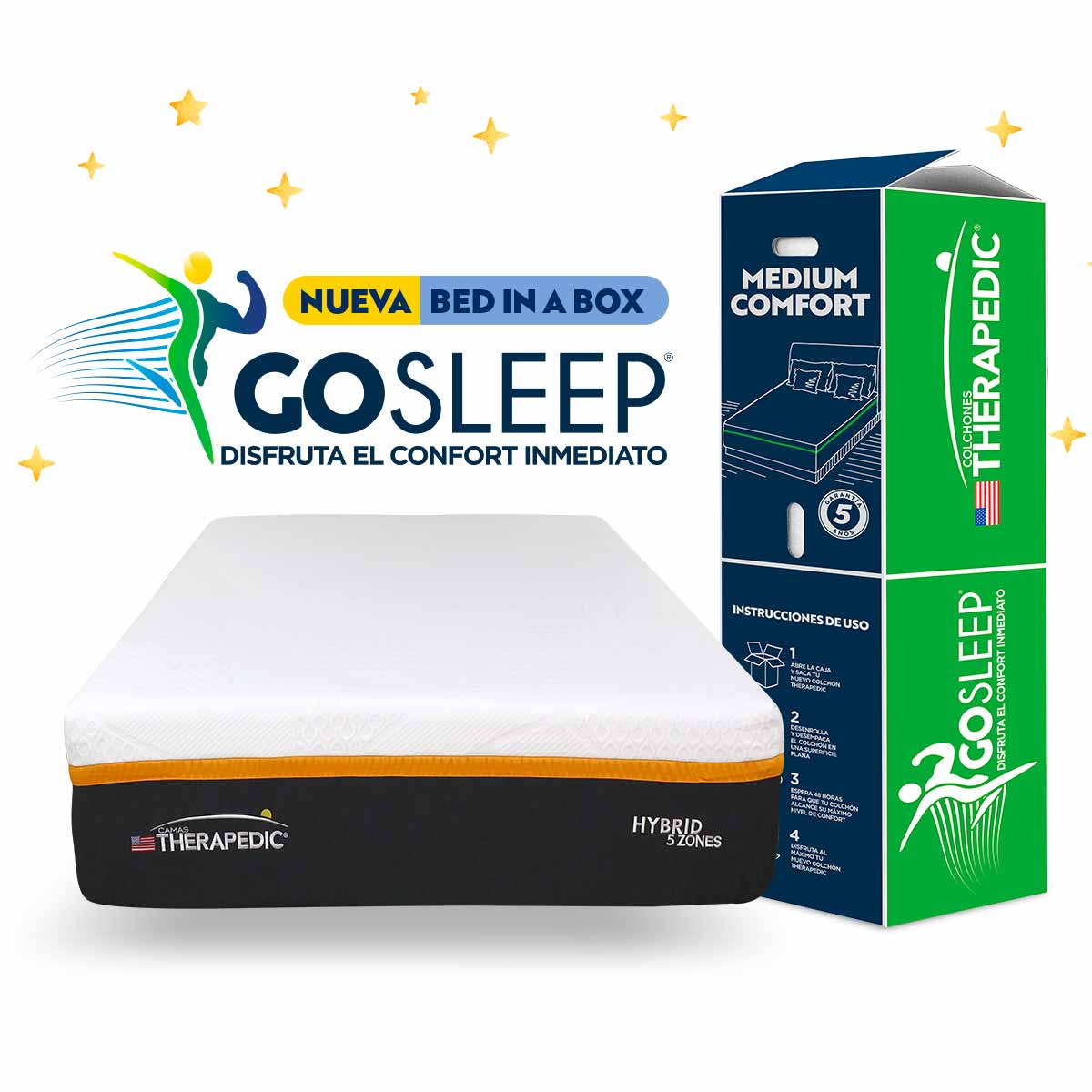Camas Therapedic Bed in a box, Go sleep Medio – Confort Medio